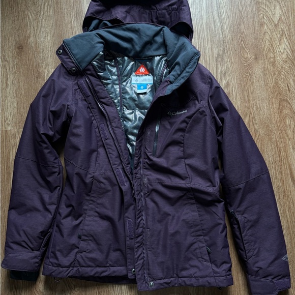 Columbia ski jacket with Omni-Heat technology. Features gray and purple design.