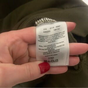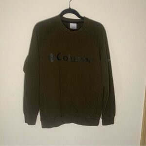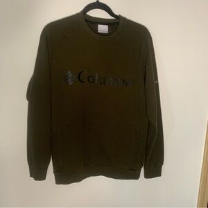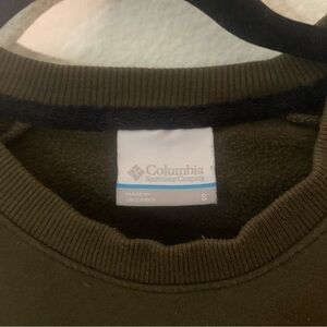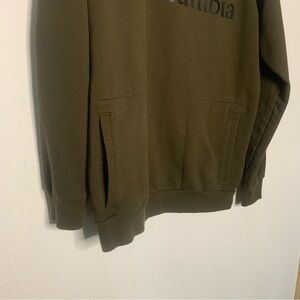 Women's Columbia green crewneck sweatshirt with black lettering. Has pockets. Size small. This has a few small stains and some pilling.
