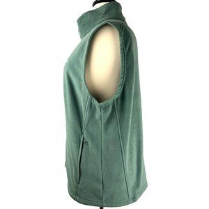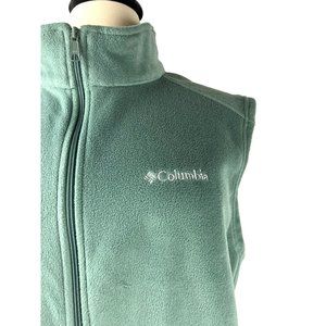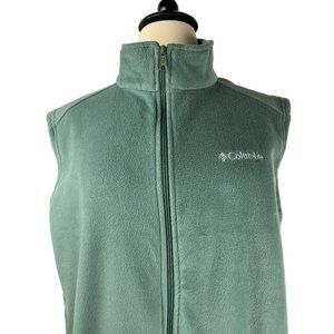 Stay warm and stylish with the Columbia Green Fleece Vest for women in size X-Large. This collared, full-zip vest features side pockets and is crafted from comfortable polyester in a solid green color.