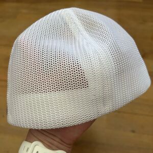 •Olive green and white fitted trucker cap hat with patriotic US tree forest flag patch