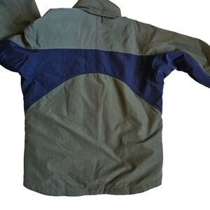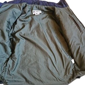 This Columbia Sportswear Men's Jacket in size S features a green and blue color scheme with a full front zipper closure. Designed for outdoor activities, it is made of nylon softshell fabric with insulation for warmth. The jacket includes a removable hood, zipped pockets, taped seams, inside zip pocket, and is water and wind-resistant, making it suitable for winter, fall, and spring seasons. Ideal for travel, casual wear, or workwear, this mid-length parka from the Columbia Omni-Tech line offers a stylish and functional option for various outdoor pursuits. Pre-owned good used condition. Minor flaws due to normal wear and cleaning. Slight discoloration on left shoulder, but it changes with light? Approximate Measurements: