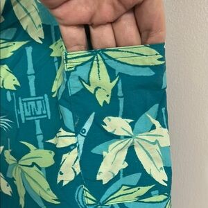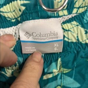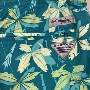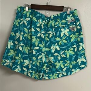 Columbia Green and White Swim Trunks Tropical Leaf Design