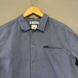Columbia Grey Button Up Shirt Solid Print Mens Size Large Outdoors