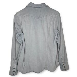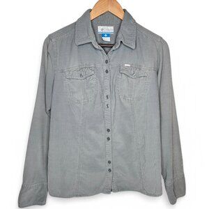 Columbia Grey Corduroy Button Up Shirt Women's Outdoor Flap Pocket Hiking L