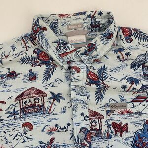Columbia Hawaiian Shirt Button Up Small Beachy Outdoorsy Preppy All Over Print