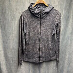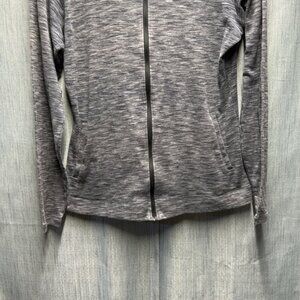 Comfortable heathered gray jacket. Features a full zip design. Ideal for everyday wear.