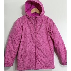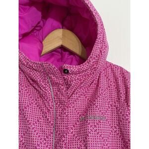 Columbia Heavy Winter Ski Snow Pink AOP Coat Girls Youth L 14/16 Large