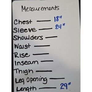 Measurements from photo: Chest 18 inches; Sleeve 24 inches; Length 29 inches