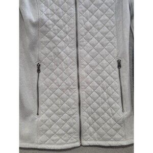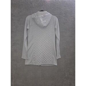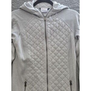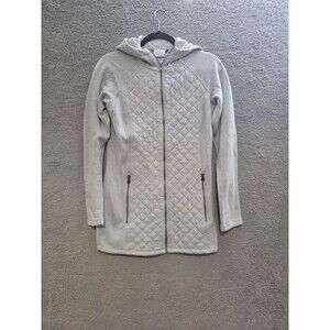 Columbia Hooded Jacket Womens Small Light Gray Quilted Full Zip Longline Fleece