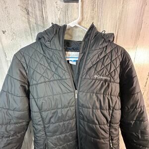 Keywords: Columbia, Puffer Coat, Hooded Jacket, Black Winter Coat, Water Resistant, Lightweight Puffer, Polyester Fill, Cold Weather Gear, Outdoor Jacket, Size Small, Columbia Outerwear, Winter Essentials, Warm Coat, Travel Jacket