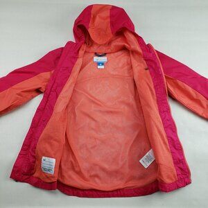 Columbia Hooded Rain Jacket Girls Large 14/16 Pink Full Zip Lined Nylon Coat