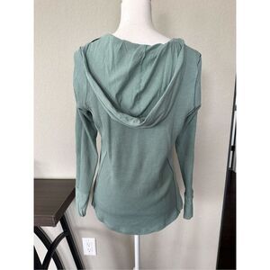 Columbia Hooded Long Sleeve Waffle Thermal Sage Top Medium great condition