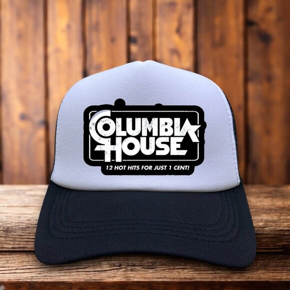 Columbia House Defunct Records Mens Trucker Hat Black Snapback 50s Vintage Logo