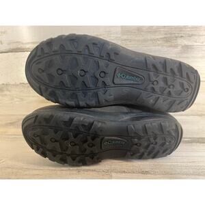 This is a pair of Columbia Ice Maiden II Boots in color Cordavan/SIberia (Dark Brown). Womens size 9. Waterproof. Insulated. Lace up. Shaft on Back 6". Shaft at Laces 9". Wear to Left boot as seen in last 3 pictures.