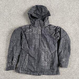 Columbia Interchange 3 In 1 Jacket Womens Hooded Winter Coat Gray Print Black Fleece