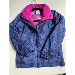 Columbia Interchange Girls Kids Jacket Coat Size Small Omni Tech Blue Pink geometric