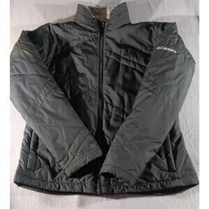 Stay warm and comfortable with this Columbia Interchange women’s jacket, size Large. Features a quilted black shell with a soft fleece lining for extra insulation. Full zip front, long sleeves, and lightweight warmth make it perfect for everyday wear, outdoor activities, and cold-weather layering. Durable and classic Columbia quality.