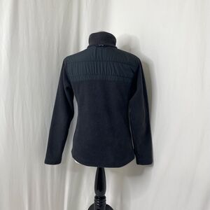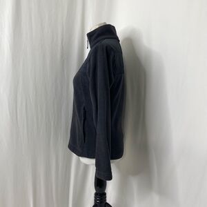 Columbia Interchange Jacket Womens Medium Black Long Sleeve Full Zip Fleece. Very clean and well-kept condition. No major damage or stains that we saw at all. Has Some wear from use outdoors and storage as well as two small surface burn holes on the inside of the jacket that arent visible when wearing but still in good usable condition.