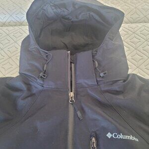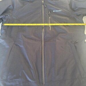 This is a dark gray Columbia parka with a 2-in-one feature. The outside jacket is wind-proof and water proof breathable; the inner jacket is lighter in weight and an omni-heat foil inside. There are inside attachments to keep the jackets snugly together. It is excellent shape with no flaws, holes, stains or other imperfections. All zippers work fine. The hood is detachable. I purchased this but never wore it. All measurements are in the photos. If you need more information, please email me
