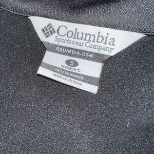 This Columbia interchange soft shell jacket in black and red is made of polyester and features long sleeves and a full zip closure. It is machine washable and has ribbed knit trim and pockets. The jacket also includes accents such as a zipper and logo, making it a stylish and colorful addition to any wardrobe. The size is small and it is designed for women. #32
