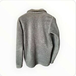 This black jacket features side pockets that zip closed and a zipper enclosure for added convenience.