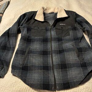 Columbia Jacket Fleece Gray Plaid Sherpa Collar Medium