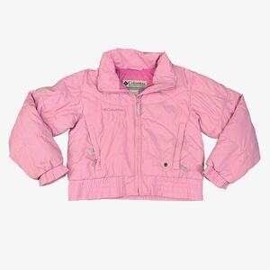 COLUMBIA JACKET GIRL 10/12 YOUTH PINK DOWN FEATHER EMBROIDERED DETAILS FULL ZIP