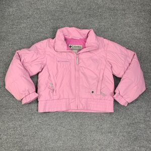 Columbia Jacket Girl 10/12 Youth Pink Down Feather Embroidered Details Full Zip