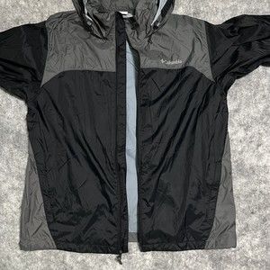 Columbia Jacket Men's L Full Zip Up Hooded Packable Black 100% Nylon RN 69724