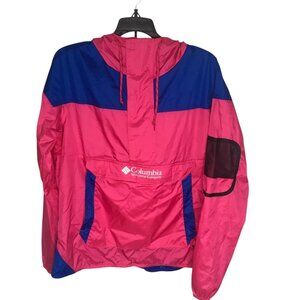 Columbia Jacket Mens XL Pink Blue Hooded Anorak Windbreaker Pullover KX0490