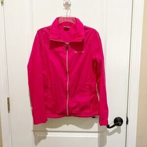 Columbia Jacket Windbreaker Full Zip Stowaway Hood Lightweight Pink Size Small