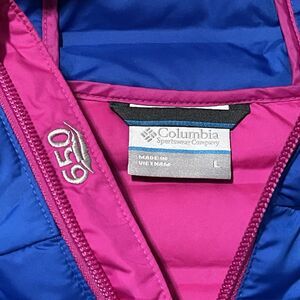 Columbia Jacket Womens Large Blue Pink Colorblock 650 Down Fill Puffer Ski
