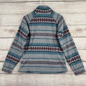 Columbia Jacket Womens Medium Gray Blue Red Fleece Full Zip Aztec Print Outdoors