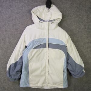 Columbia Jacket Womens Medium White Blue Gray Hooded Snow Ski Coat Fleece Lined