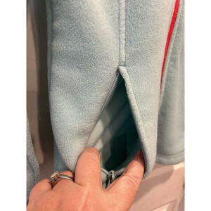 Gorgeous Blue Green fleece with bright coral zipper. Great pre owned condition. Very light staining on the wrists that is not very noticeable. Pictured.