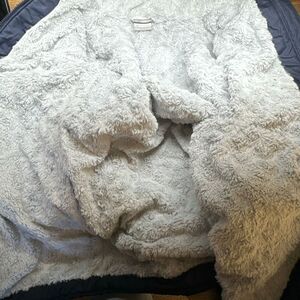 Right Pocket Zipper BROKEN. Columbia Jacket womens Medium Blue Navy Copper Crest Long Hooded Plush Fur Lined