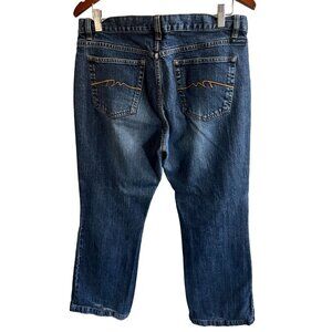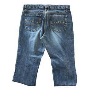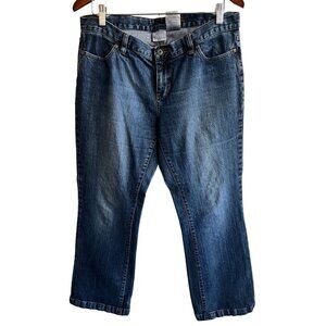 Columbia Jeans Womens 14 Blue Denim Boot Cut Leg Faded Distressed Torn