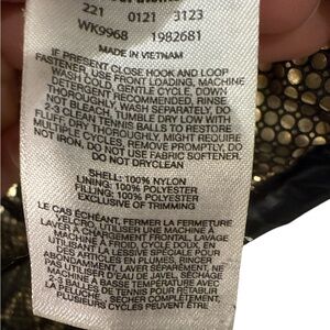 Stylish and warm ski jacket. Quilted design. Full zip closure. Perfect for winter sports.  Omni heat technology and repels moisture.  Comes from a pet and smoke free home.