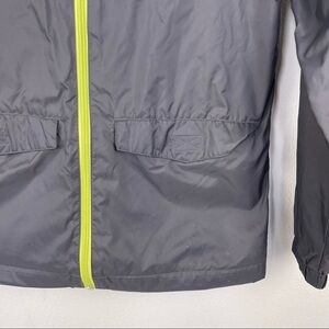 Columbia Junior Boys Gray with Neon Yellow fleece lining windbreaker jacket L