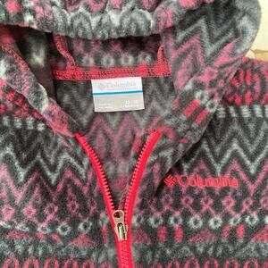 Warm and stylish fleece one piece. Features a vibrant pink and black pattern. Ideal for cozy comfort.