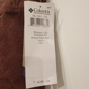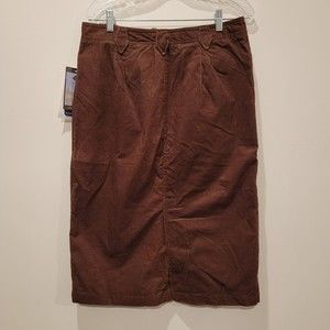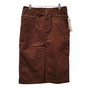 Columbia Women's Skirt Brown corduroy-like midi skirt Size 10 New with tags. MSRP $45 Pockets Authentic fit Back slit goes up 10" 60% cotton 40% polyester Waist across 16" Hips across 20" Length 27.5"