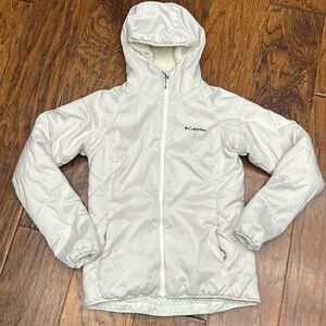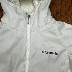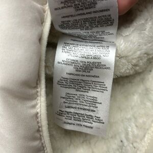 Good condition size XS polyester material pockets available hood is also accessible super comfy Sherpa like interior