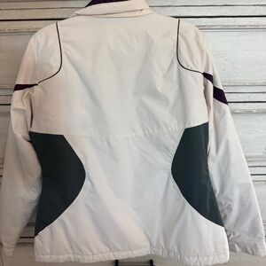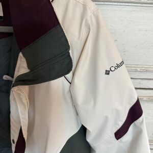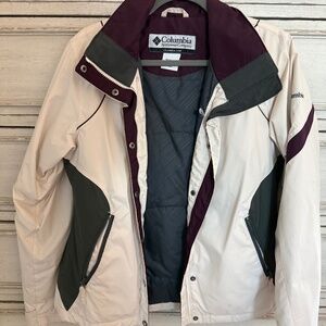 Beautiful Burgundy, grey and cream women's jacket. Great for skiing or winter activities.
