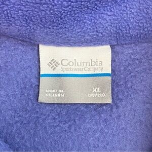 Columbia Lavender Full Zip Front Fleece. Super soft and warm fleece jacket with long sleeves and zipper closure front pockets. A perfect pop of color to any outfit! Please review photos for wash/wear to fleece. Still has lots of life left, just no longer fits me. Please note, this is a kids/juniors size XL, it also fits an adult medium, I loved the color so much I bought a kids one because the adult color was sold out. Review photos to see if it will fit you.
