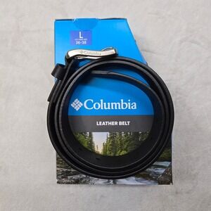 Brand new Columbia leather belt, a versatile and stylish accessory for men. This belt features a sleek black leather strap complemented by a silver-tone buckle, offering a classic and sophisticated look. Designed to fit pant sizes 36-38, this size L belt is a perfect addition to any wardrobe, providing both functionality and a touch of elegance.