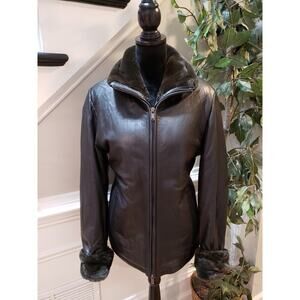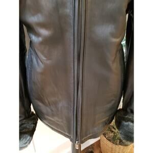 Stay warm and stylish with this Columbia Sportswear women's medium black leather jacket. Featuring a soft faux fur lining, zip front, and faux fur cuffs, it's perfect for cold weather. Crafted with genuine leather and a cozy acrylic/polyester lining, this jacket combines durability with luxurious comfort. Ideal for winter and outdoor wear. Cleaned professionally for longevity.