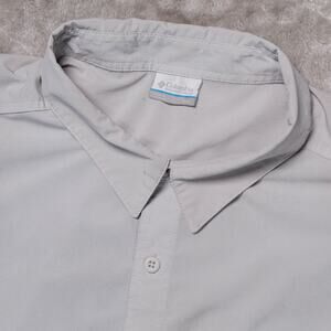 Columbia Light Gray Short Sleeve Casual Button Down Stretch Shirt Mens Size XXL Good condition - see pictures for measurements Spots as shown in photos.