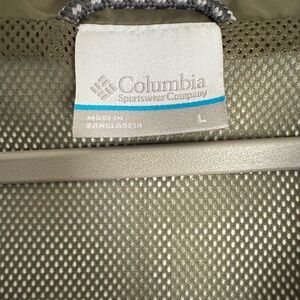 Columbia Lilian Ridge Rain Shell. Only worn a few times. Light jacket with comfortable mesh interior. Can adjust fit with drawstring around waist and side snaps. Very flatter cut.