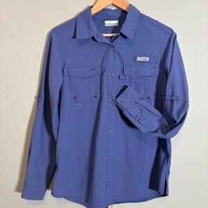 Columbia Long Sleeve Button-Down PFG Vented Fishing Shirt-Blue-Women Medium