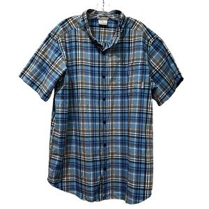 This Columbia button-up shirt is perfect for any casual occasion. With a plaid pattern and blue color, it features long sleeves and a collared neckline with a button-down closure. This shirt is made of cotton and is machine washable for easy care. It comes in a size S and has a regular fit.